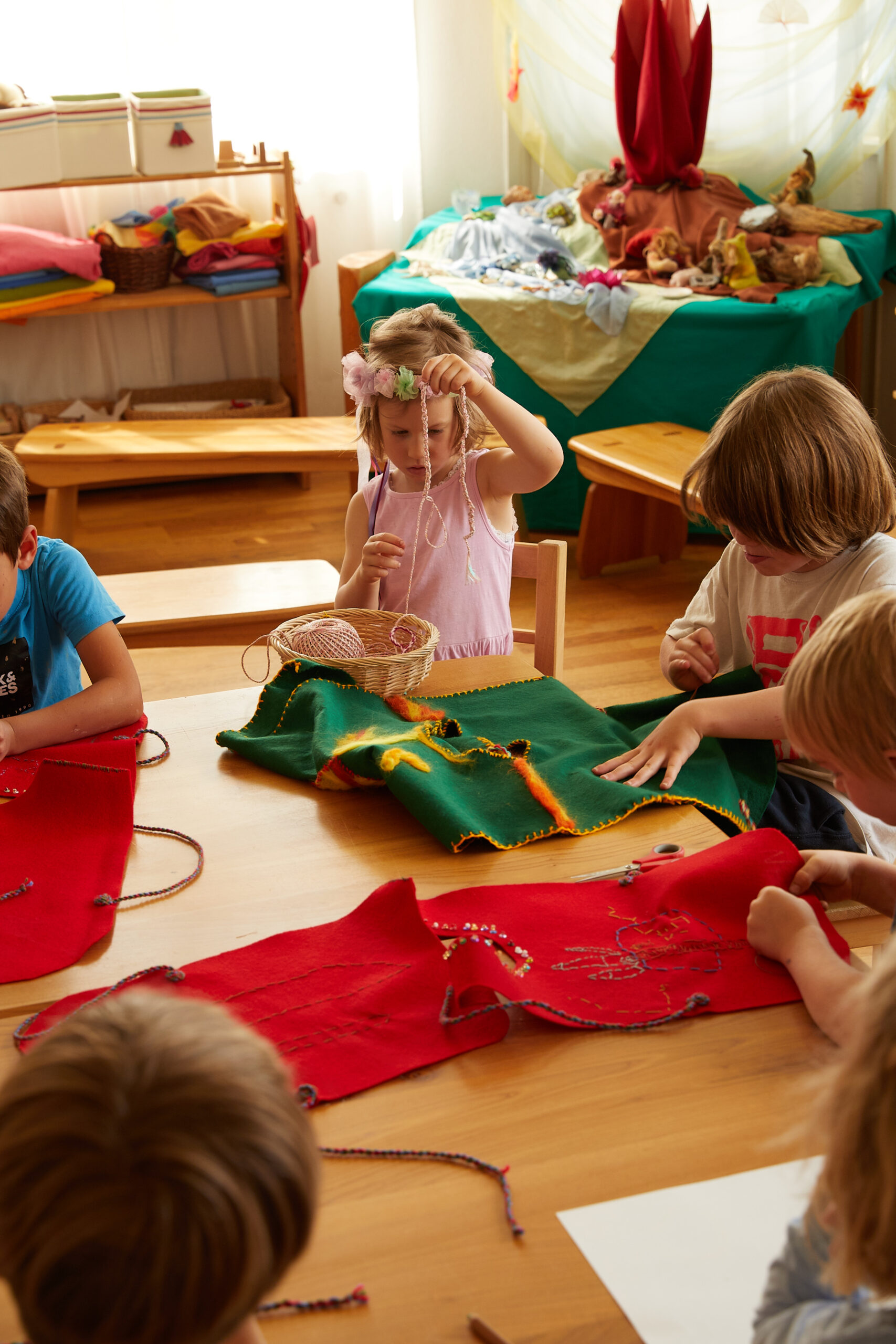 Der rhythmische, klar gegliederte Tages-, Wochen- und Jahresablauf gibt Halt, Orientierung und durchwärmt die Seele des Kindes: Feiern der Jahresfeste, Backen, Zeichnen, Malen, Eurythmie und Basteln sind einige der Tätigkeiten des Kindergartenmorgens.